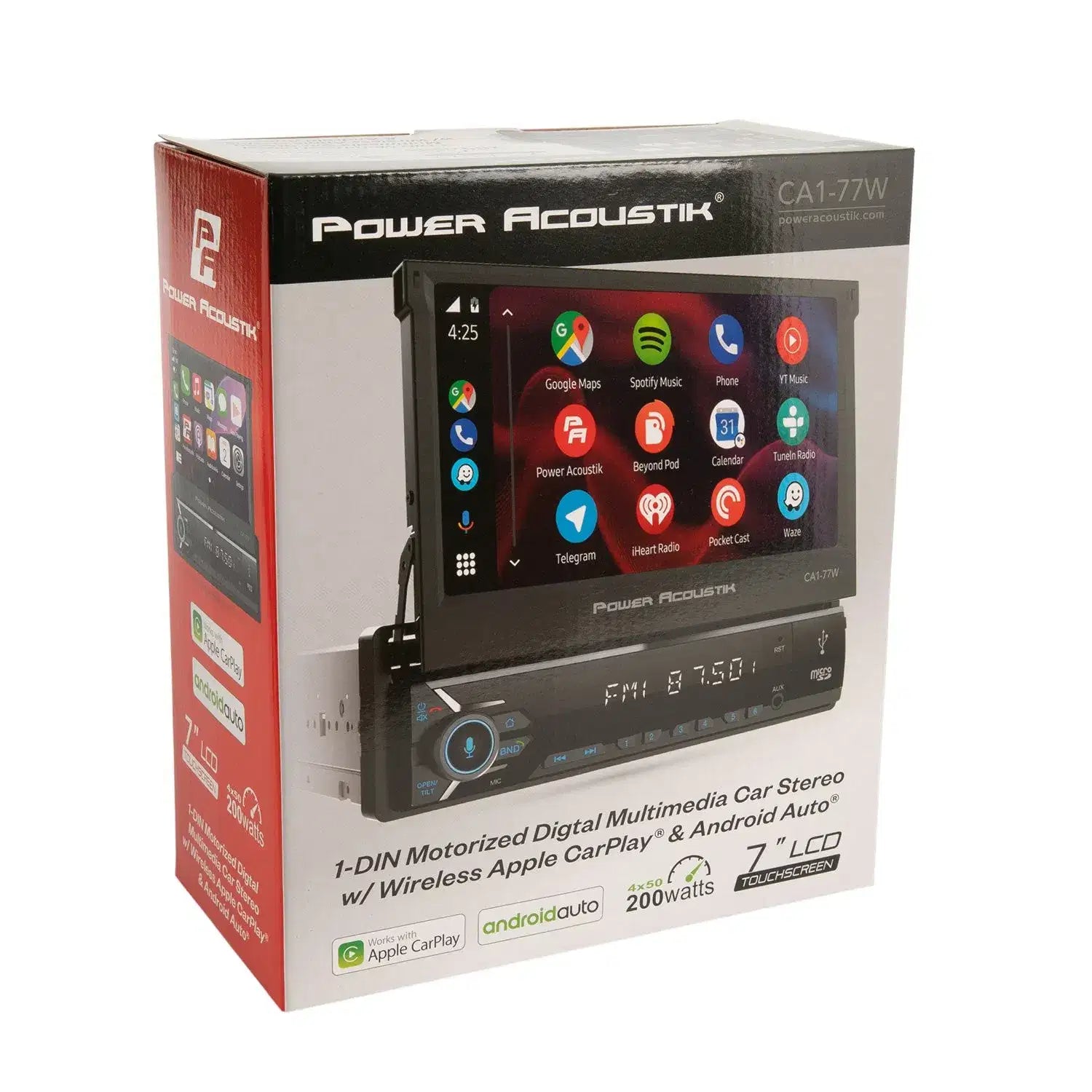Elevate your in-dash experience with the Power Acoustik CA1-77W 1-DIN Digital Media Car Stereo. Designed with a motorized 7” HD capacitive touchscreen, this multimedia system brings wireless Apple CarPlay, Android Auto, and Bluetooth 5.0 connectivity directly to your vehicle. Stay connected hands-free with Siri Eyes Free or Google Assistant while enjoying your favorite apps, music, and navigation.
